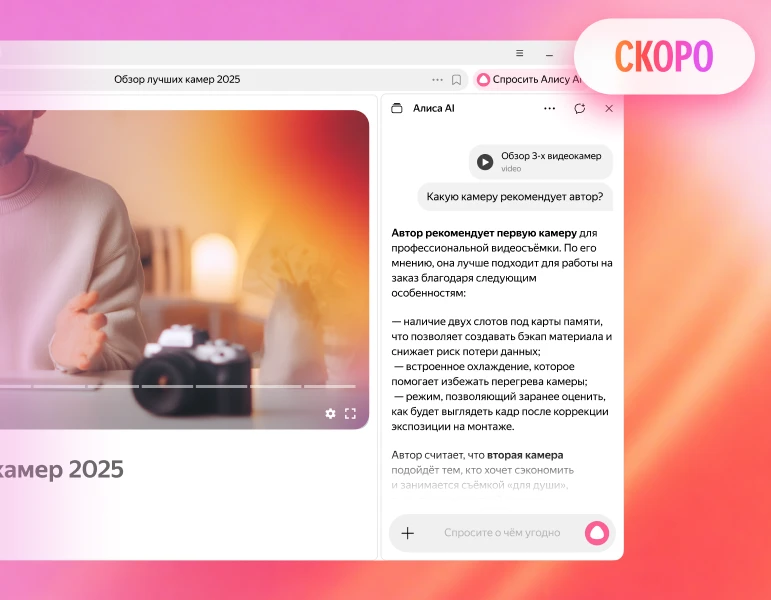 Спрашивайте о чём угодно. Алиса AI отвечает на сложные вопросы и помогает разобраться в теме.