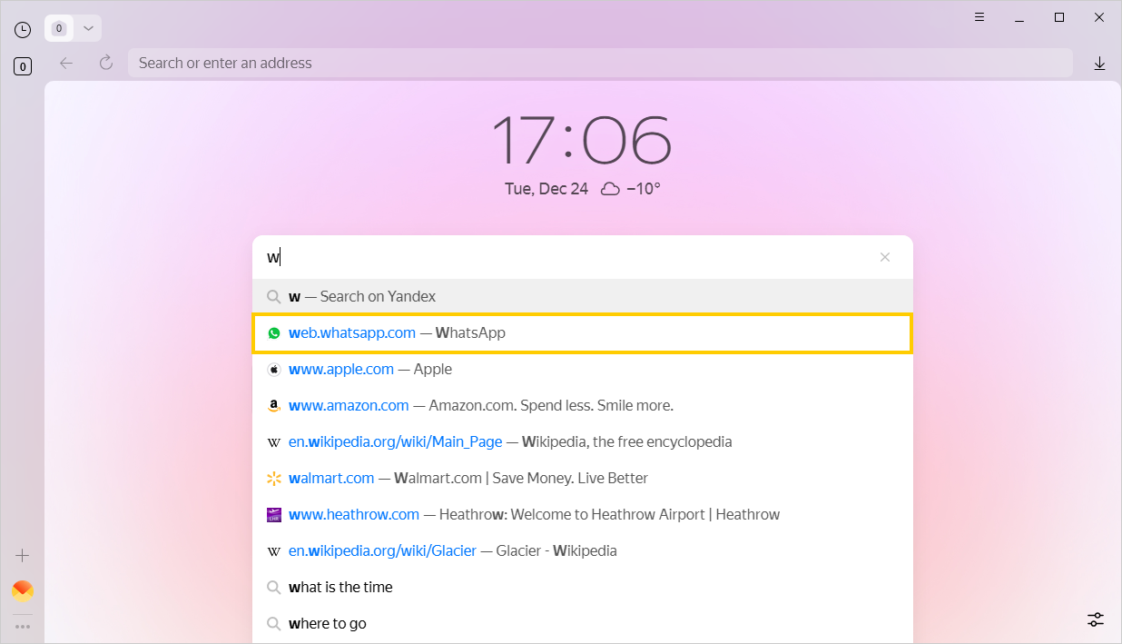 By default, Yandex Browser stores the entire history except queries in Incognito mode. You can see your previous search queries as you type.