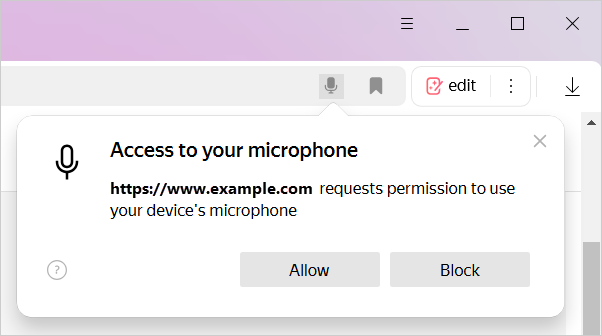 By default, when a site tries to access your microphone, Yandex Browser asks you for permission.