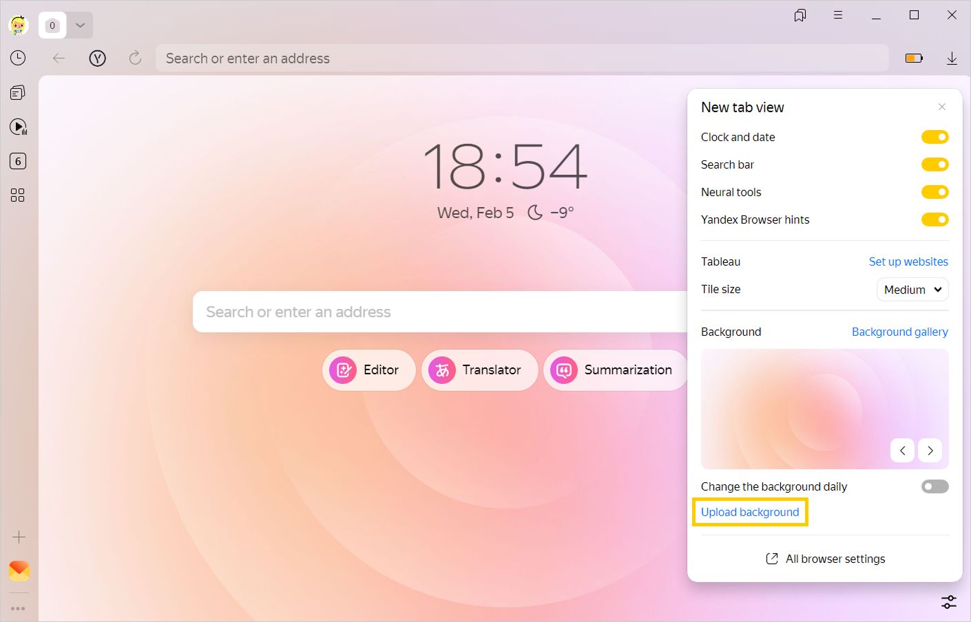 Yandex Browser background