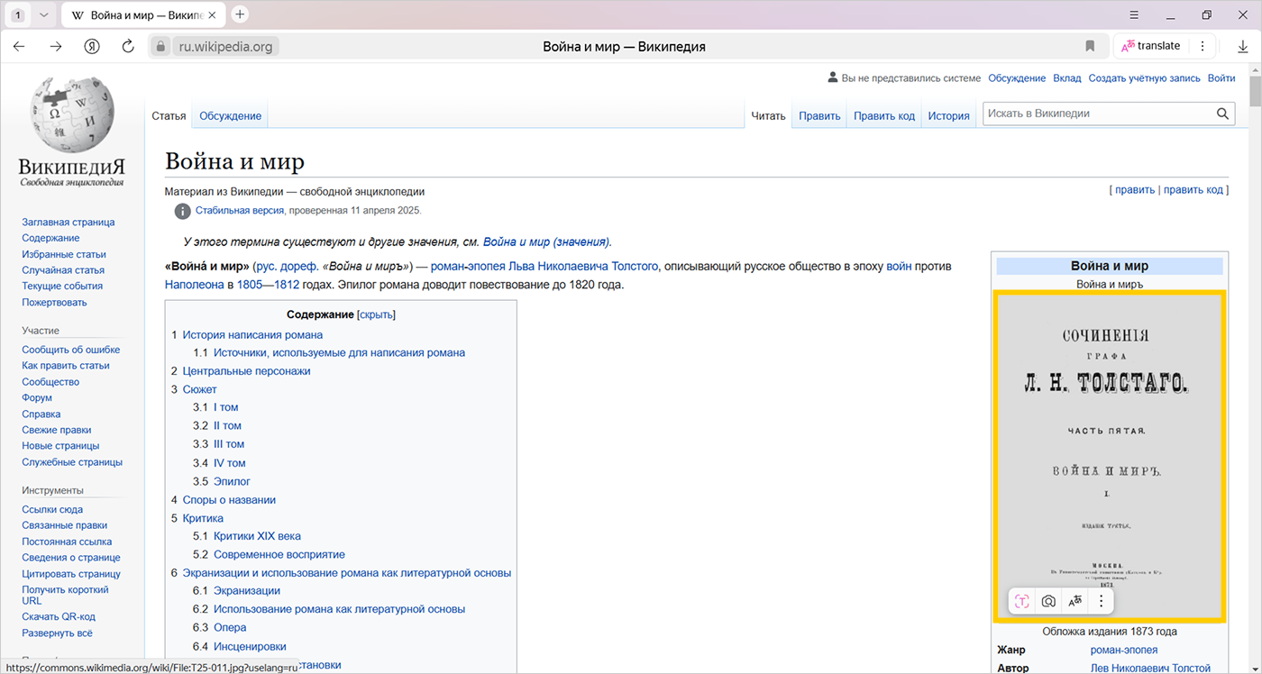 Yandex Browser automatically detects the language of the loaded page. If it's different from the interface language, Yandex Browser asks if you want to translate it. You can also open the translation window by clicking or → Translate page.