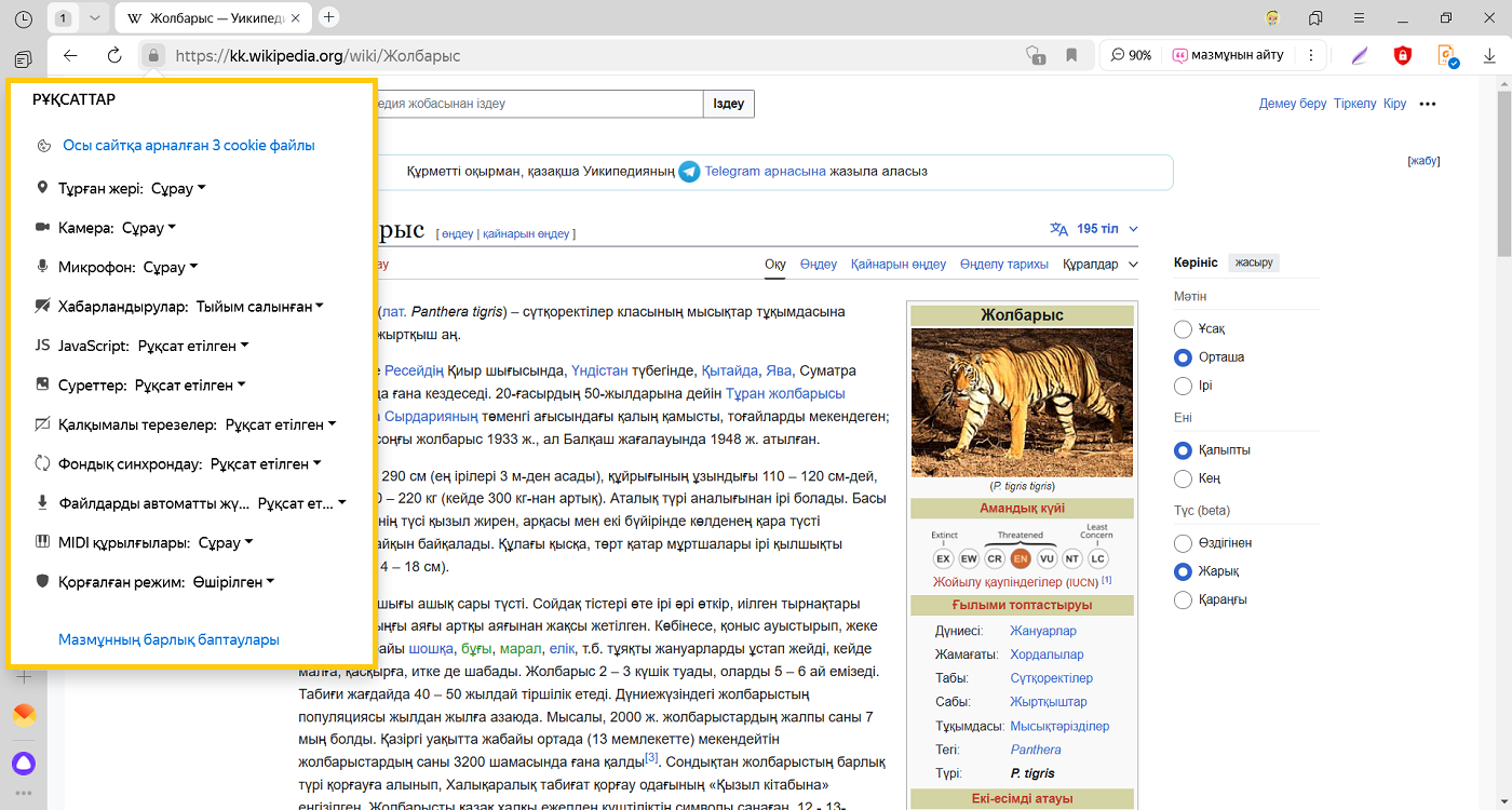 Кейде сайттарда трекерлер кездеседі (мысалы, сіз туралы ақпарат жинайтын жарнамалық баннерлер). Олардың жұмысына тыйым салу үшін Үшінші тарап cookie файлдарын шектеу немесе Үшінші тарап cookie файлдарын бұғаттау опциясын таңдаңыз.