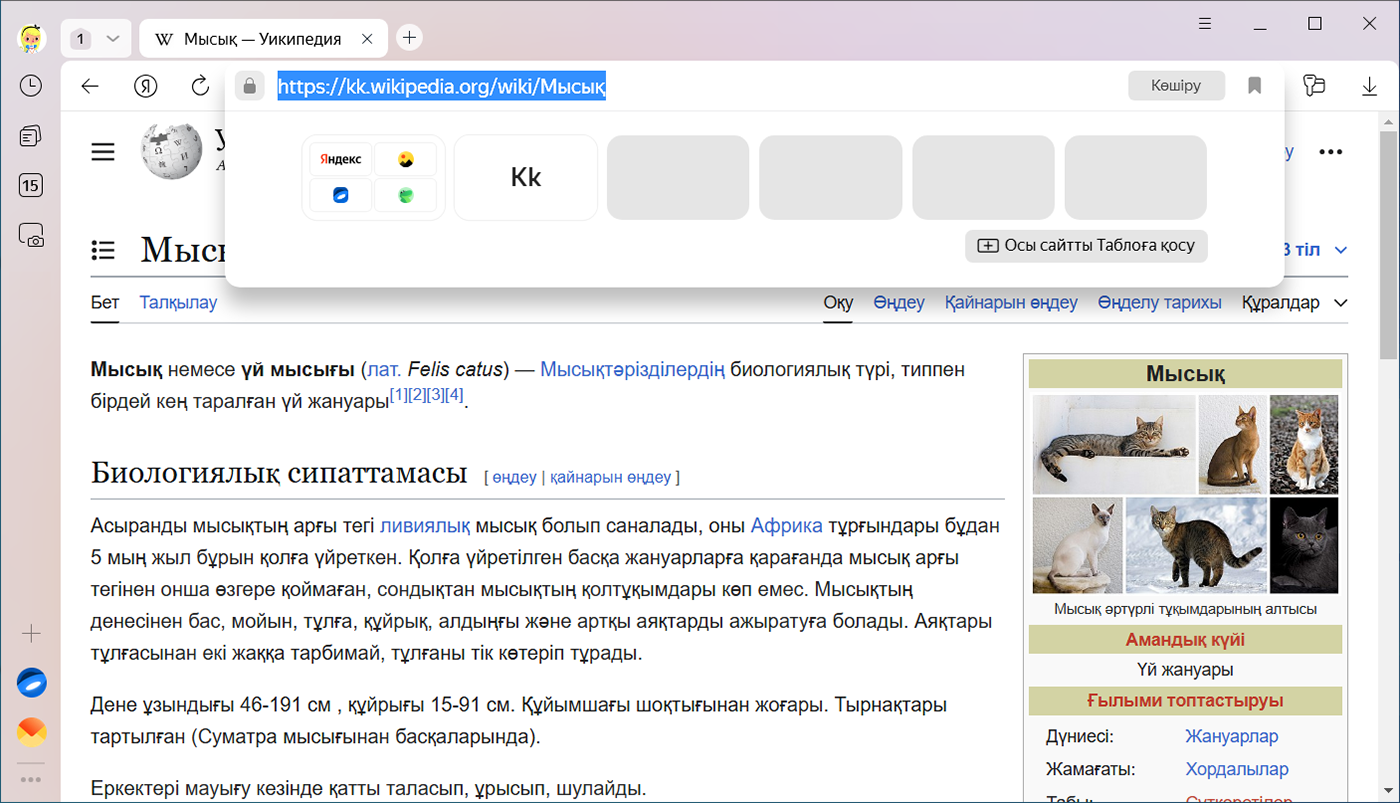 1. Ақылды жолда сұраным, сайт мекенжайы немесе сайт атауын енгізіңіз.