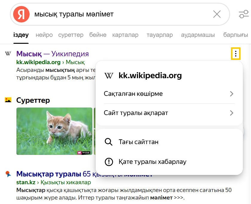 Сақталған көшірмеге сілтемені көру үшін, сайт мекенжайының оң жағындағы белгішені басыңыз: .