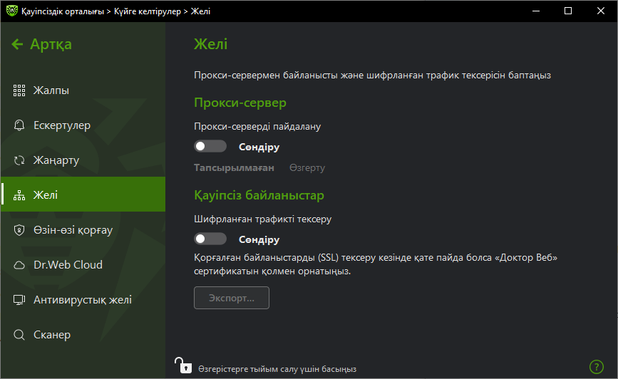 Dr.Web антивирусына арналған HTTPS-қосылыстарын тексеруді өшіру