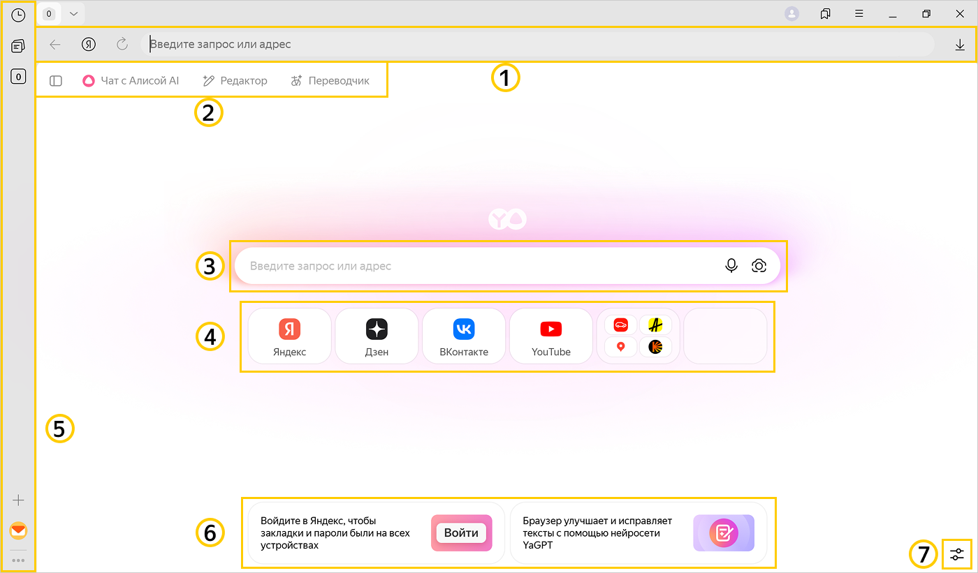 Переключайтесь между кнопками Перейти на Яндекс Кнопка Яндекса, ЗагрузкиЗагрузки, Менеджер паролейМенеджер паролей и т. д.