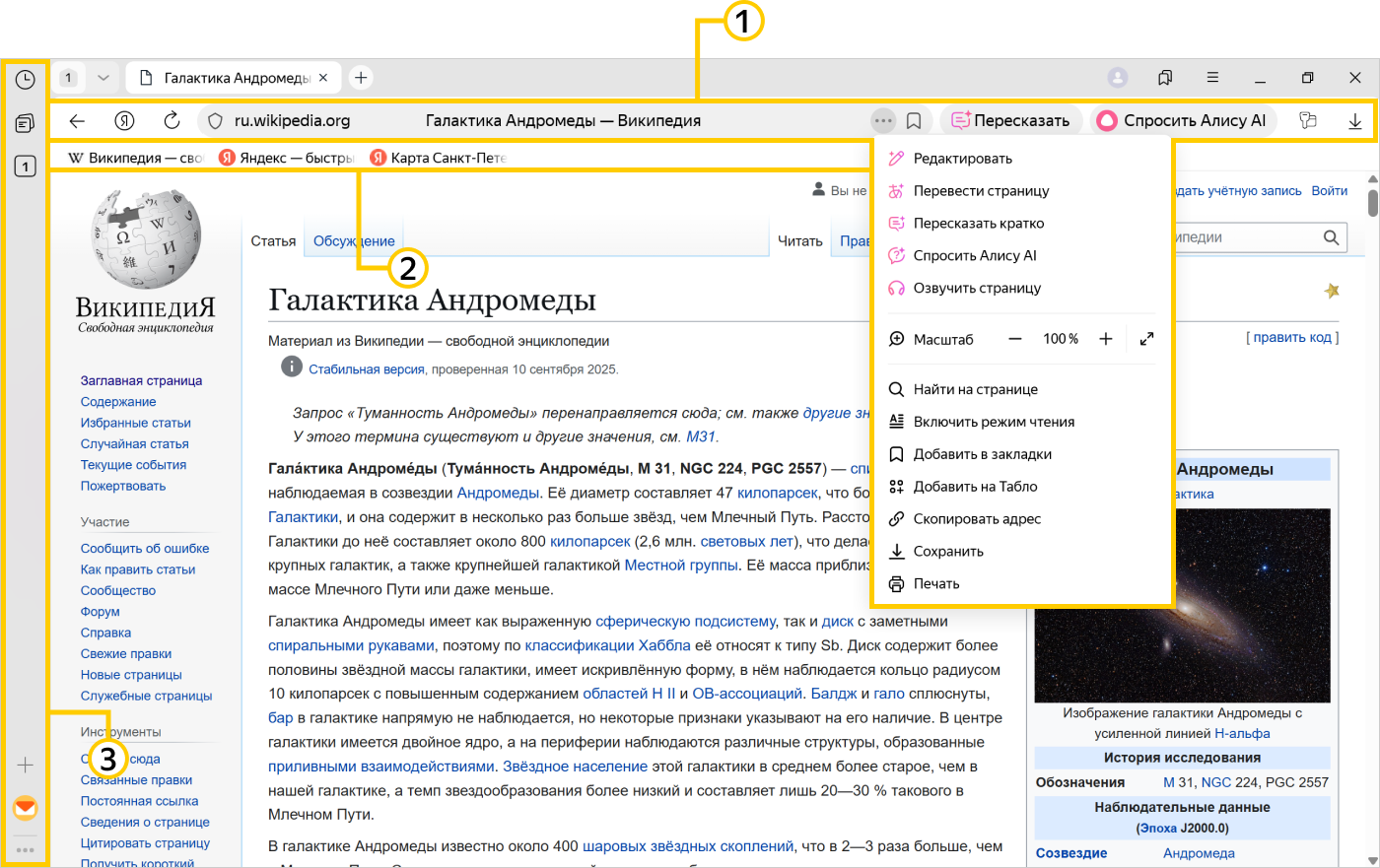 На втором уровне переключайтесь между кнопками НазадНазад, Перейти на Яндекс Кнопка Яндекса, Обновить страницуОбновить, Меню страницыМеню страницы, Пересказать Пересказать, Спросить Алису AI Спросить Алису AI, Менеджер паролейМенеджер паролей, ЗагрузкиЗагрузки и т. д.