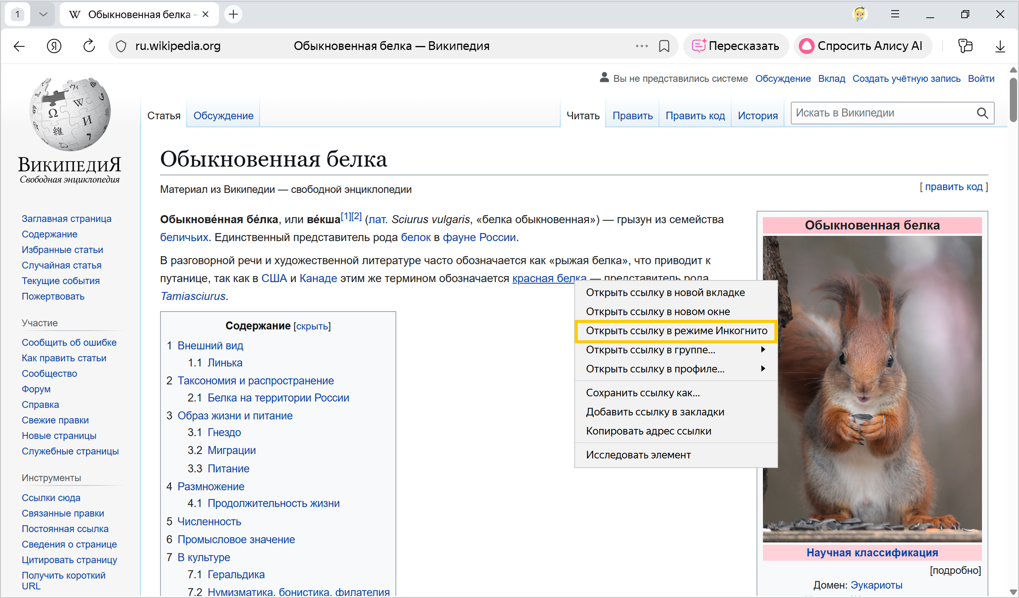 Нажмите ссылку правой кнопкой мыши и выберите Открыть ссылку в режиме Инкогнито.