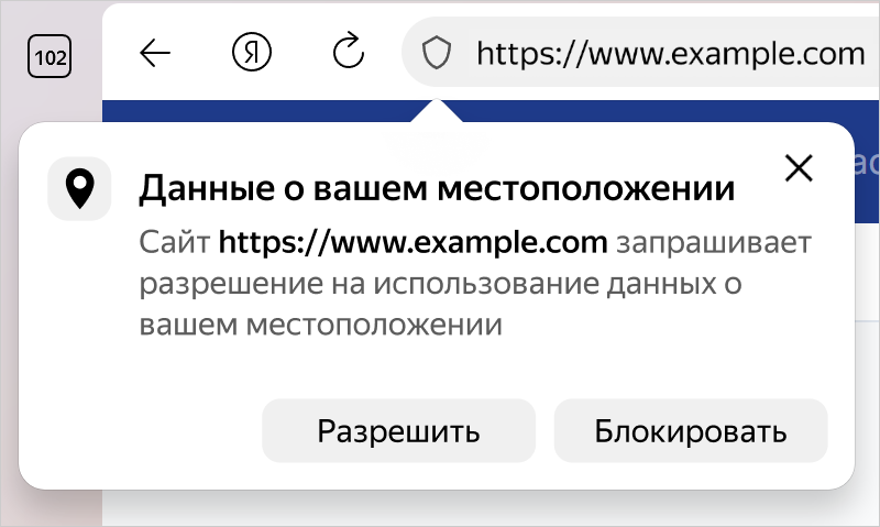 На вкладке Разрешен отображается список сайтов, которым разрешено следить за вашим местоположением. Чтобы удалить сайт из списка, наведите на него указатель мыши и нажмите Удалить. После этого сайт не будет определять ваше местоположение.