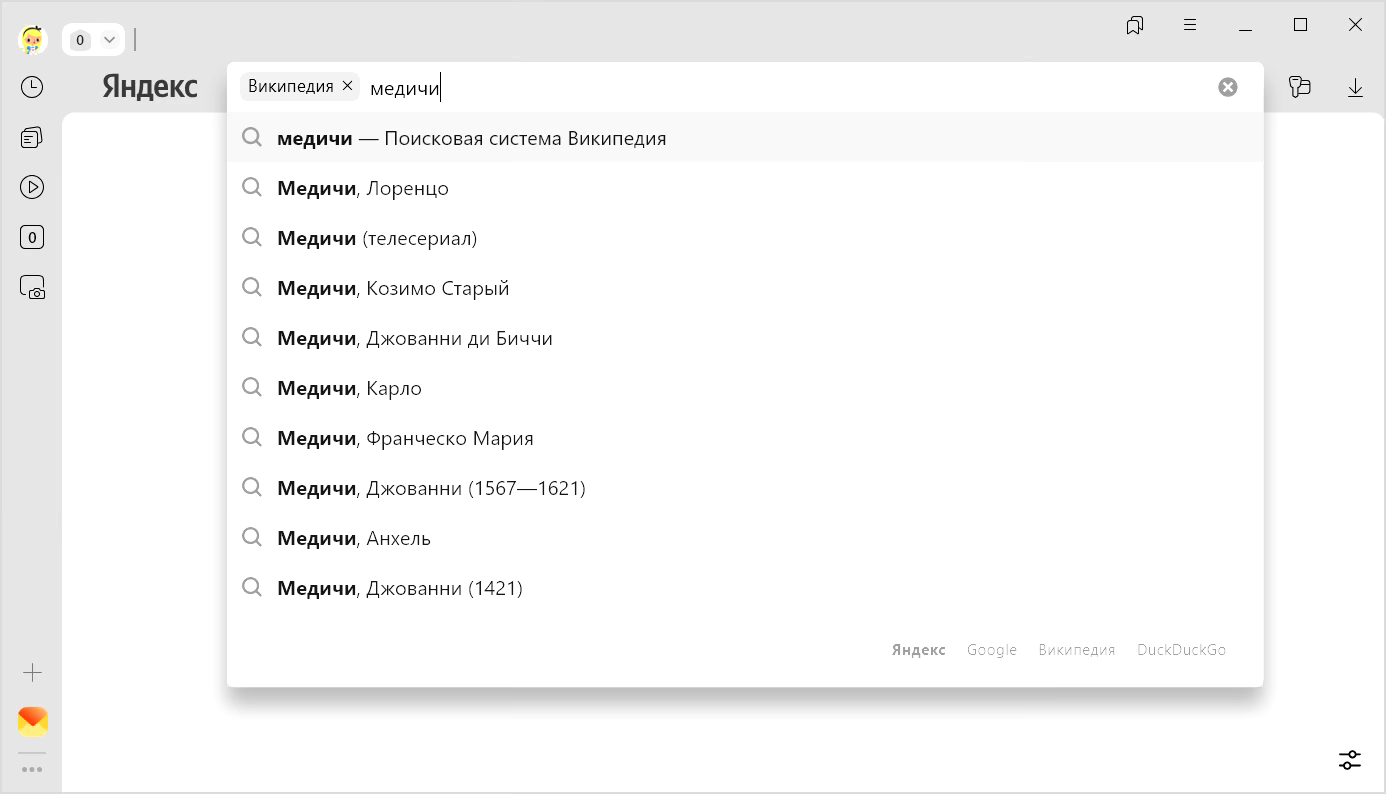 Чтобы выйти из OpenSearch, в Умной строке справа нажмите .