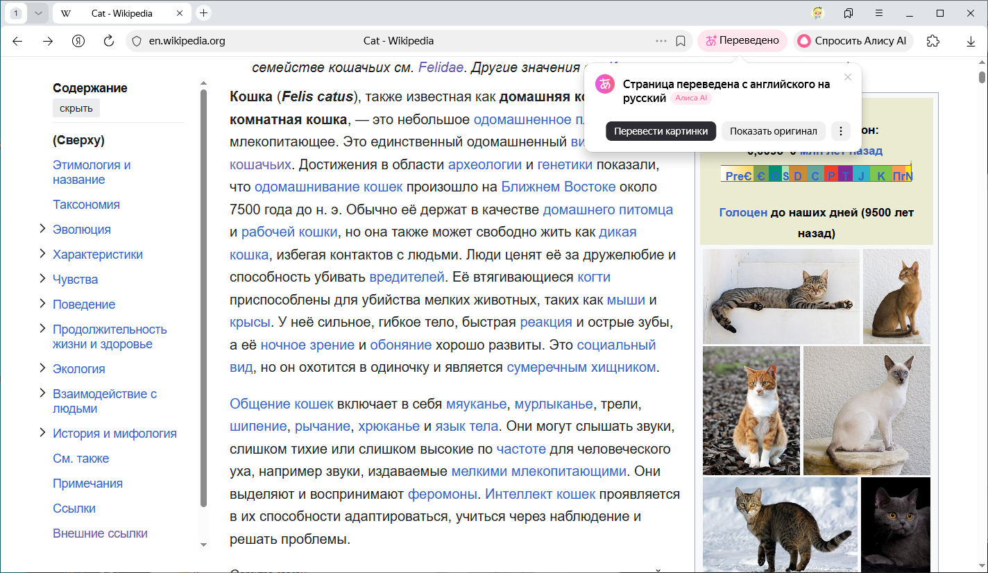 Чтобы перевести текст страницы на язык интерфейса Браузера, нажмите в окне Перевести. Чтобы вернуть страницу на языке оригинала, нажмите в окне Показать оригинал.
