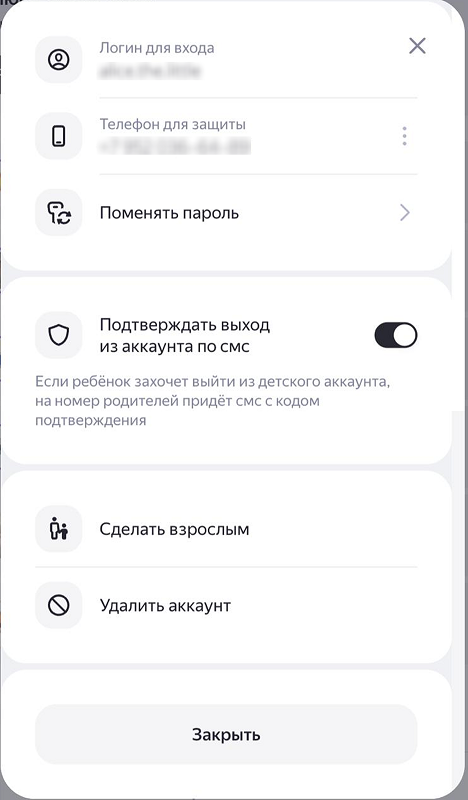 Чтобы ребенок не смог выйти из аккаунта самостоятельно, настройте подтверждение выхода по смс. Если ребенок захочет выйти из детского аккаунта, на номер родителей придет номер с кодом подтверждения.