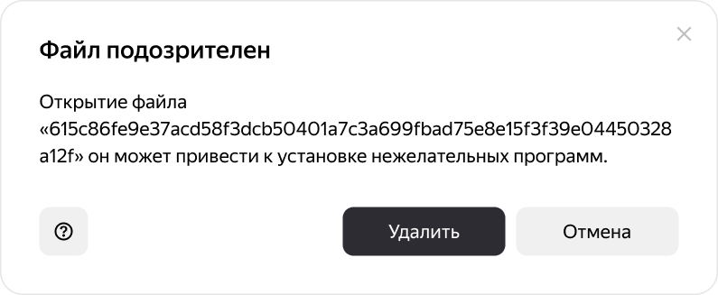 Такие файлы Браузер считает подозрительными, помечает значком Подозрительный или зараженный файл, а при попытке открыть их вы увидите предупреждение.
