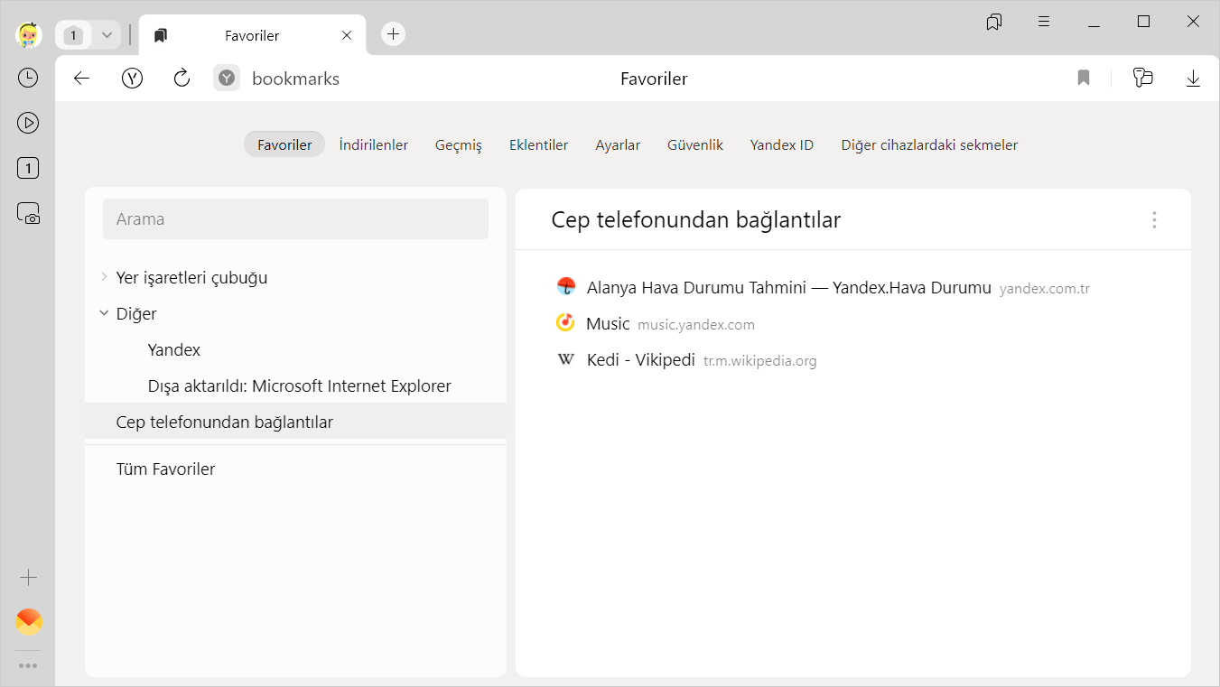 Eşitleme uygulandıktan sonra tarayıcınızda bilgisayar, tablet, akıllı telefon gibi işaretlediğiniz tüm cihazlardaki favoriler görüntülenecektir.