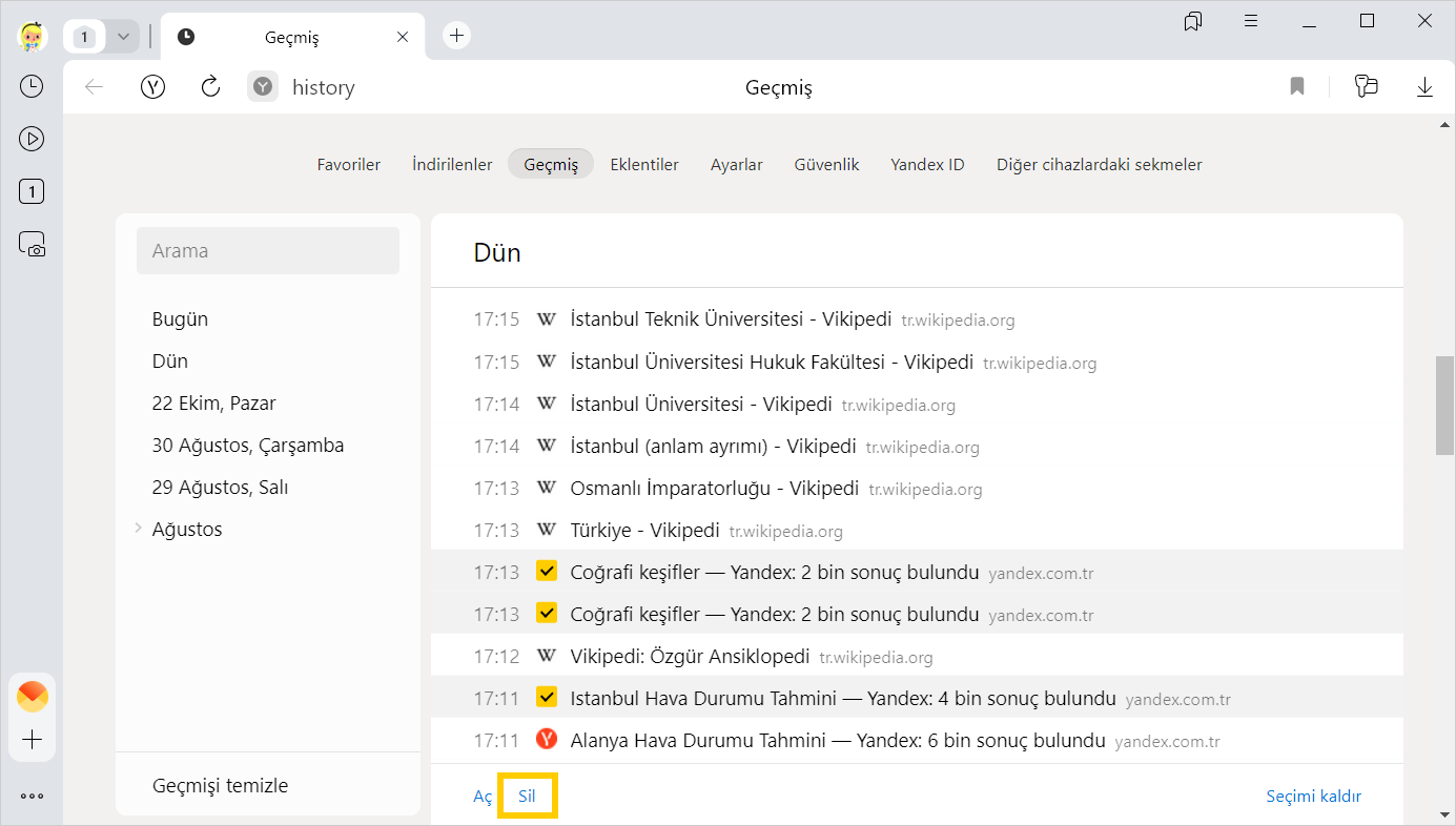 Sayfaları geçmişten silme