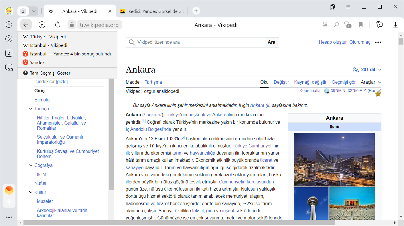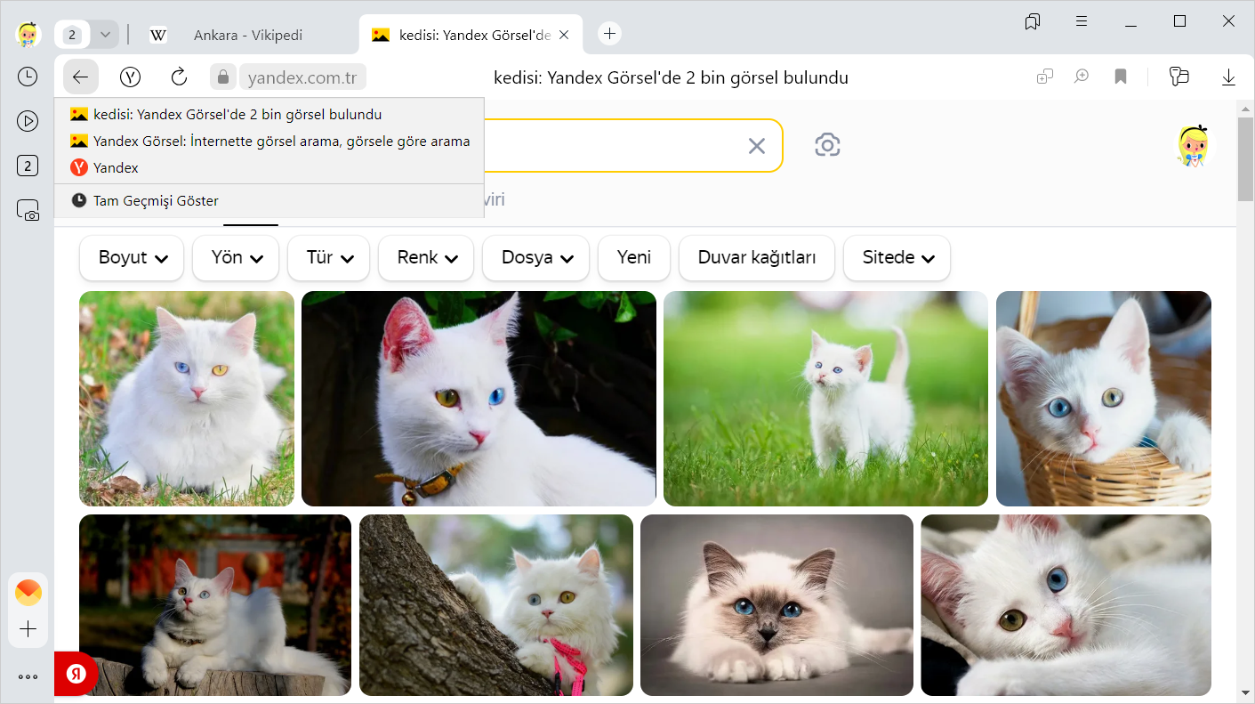 simgesi yalnızca, birden fazla sayfa görüntülediğiniz sekmelerde belirir. Simge kullanılamıyorsa tüm geçmişe gidin.