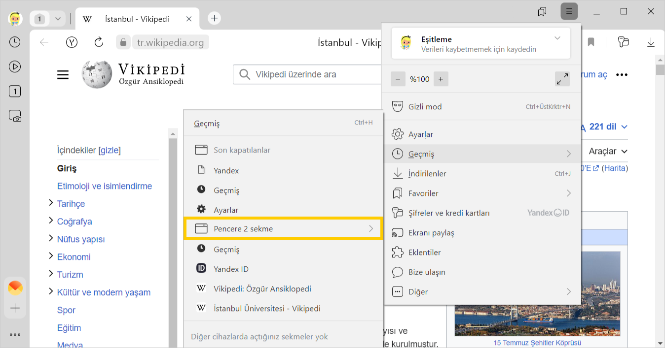 Yandex Browser yeniden başlatıldıktan sonra sekmelerim ve sekme gruplarım kayboldu