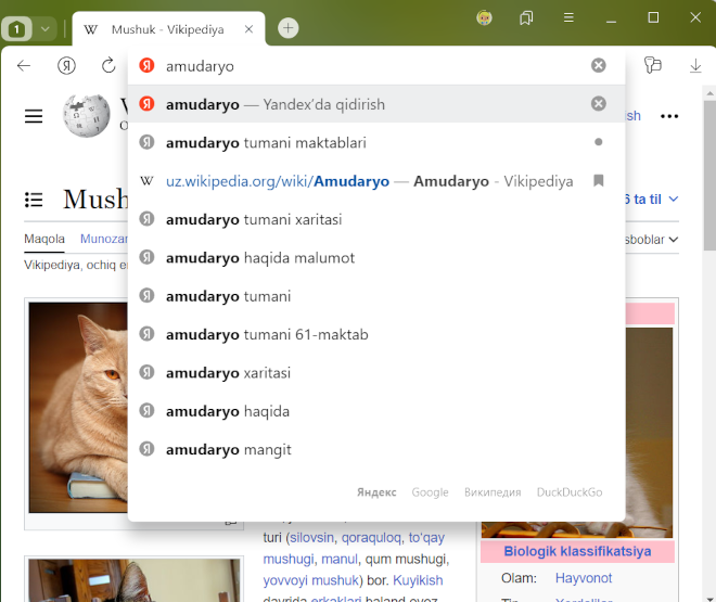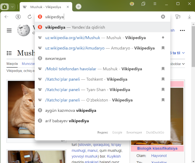 Aqlli satrga so‘rov, manzil yoki sayt nomini kiriting.