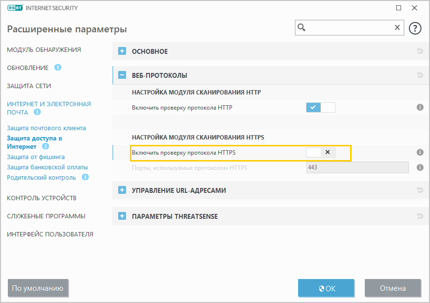 ESET NOD32 antivirusi uchun HTTPS ulanishlar tekshiruvini o‘chirish